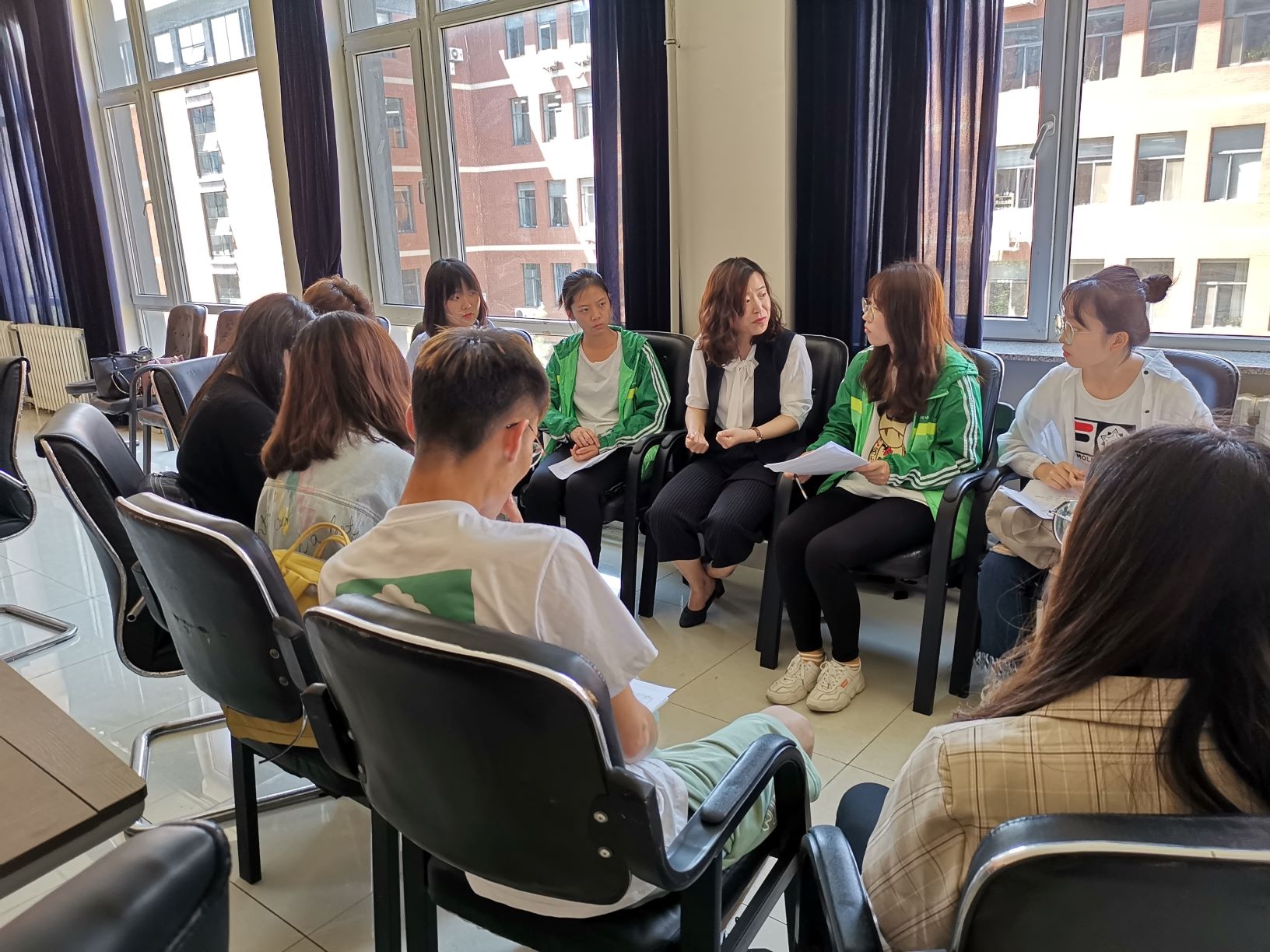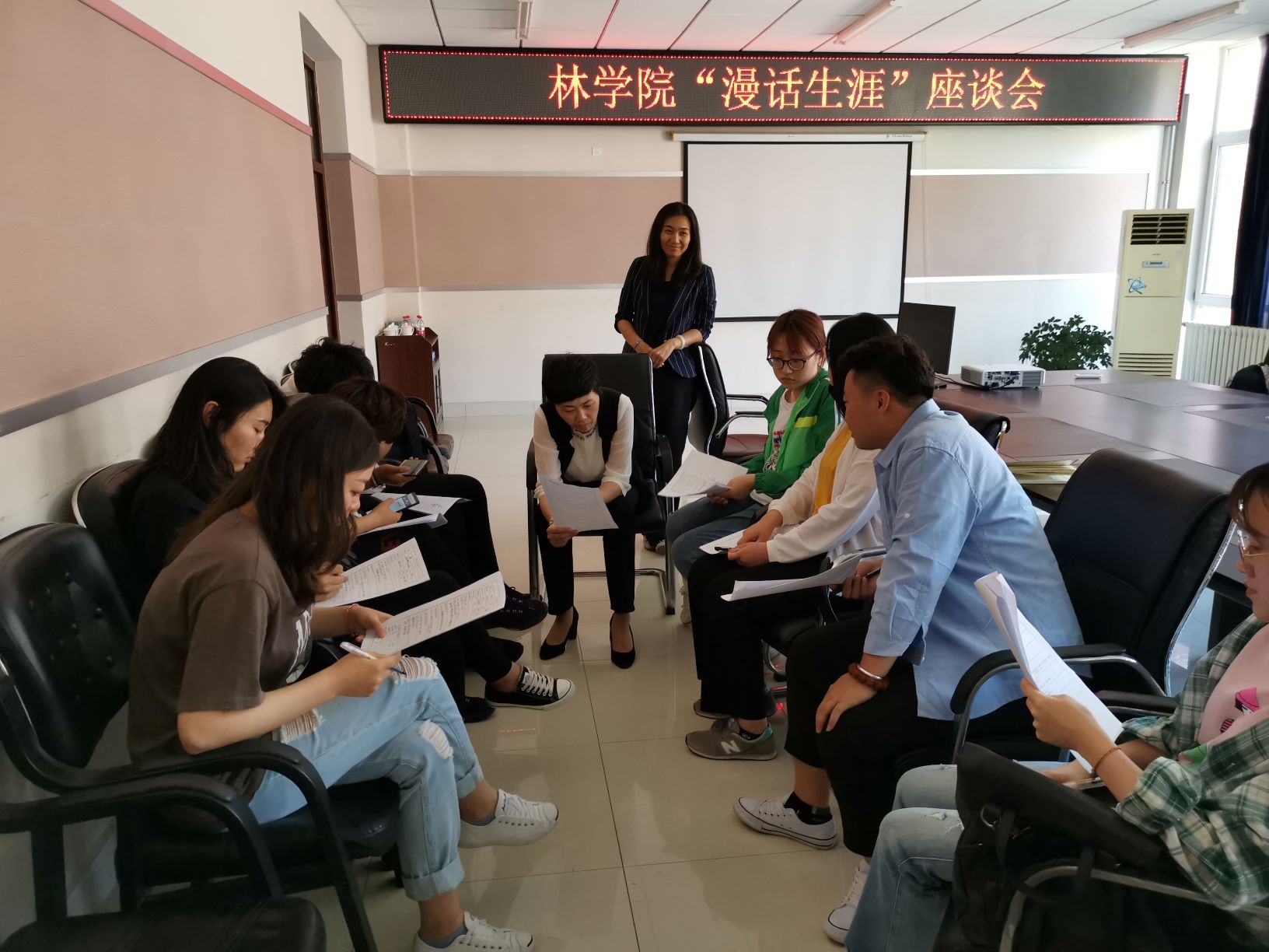 本次座谈会主要包括问卷调查和小组答疑两个环节。智合沃赢集团的企业代表为学生分发DISC性格测试和霍兰德职业兴趣测试调查问卷,并将同学们现场分为两小组,两名企业代表针对问卷调查结果对同学们进行小组内一对一答疑解惑,使学生更加深入的了解自身,理性的确定就业取向。